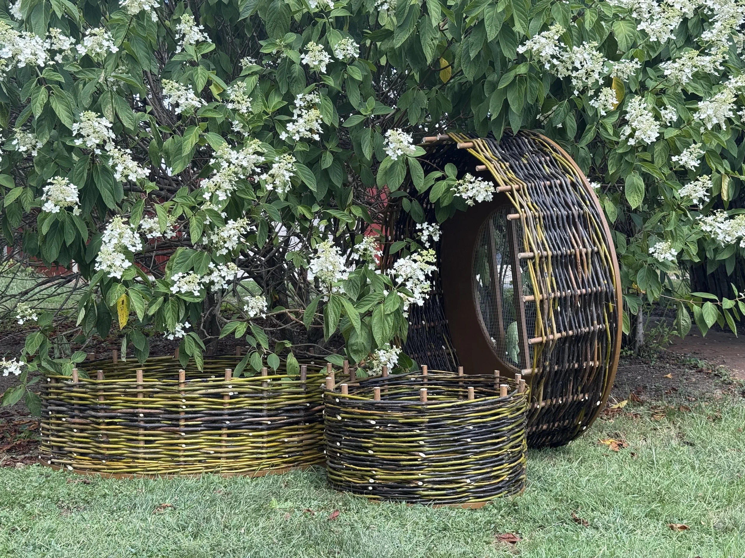 Living Willow Farm can create custom willow woven structures for exterior landscapes and gardens based on clients’ requirements. Woven wattle borders, sculptures, woven architectural walls, play structures, arbors, garden beds, treillages, cloches, panels, screens, edging, nests, huts, mazes are samples of custom work that are based on the clients’ requirements and aesthetics. In addition, the farm provide willow for customers to create their own structures.