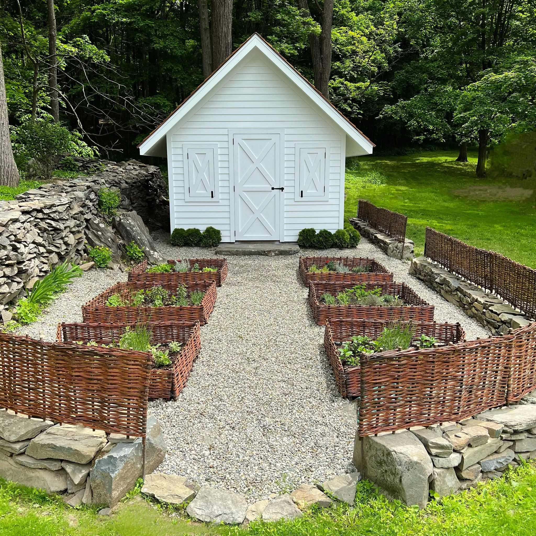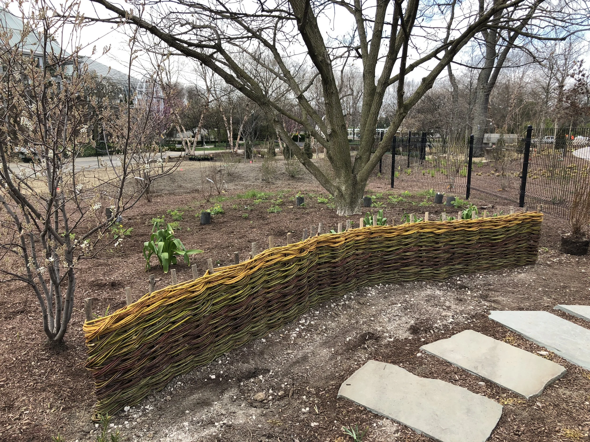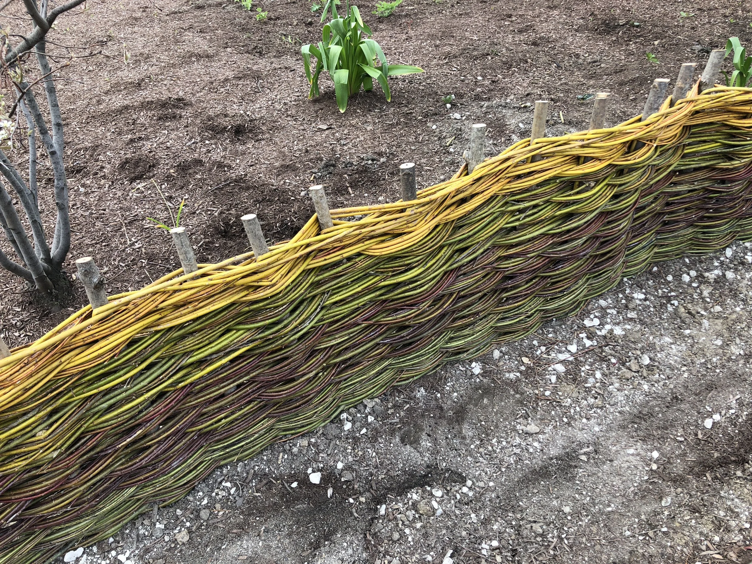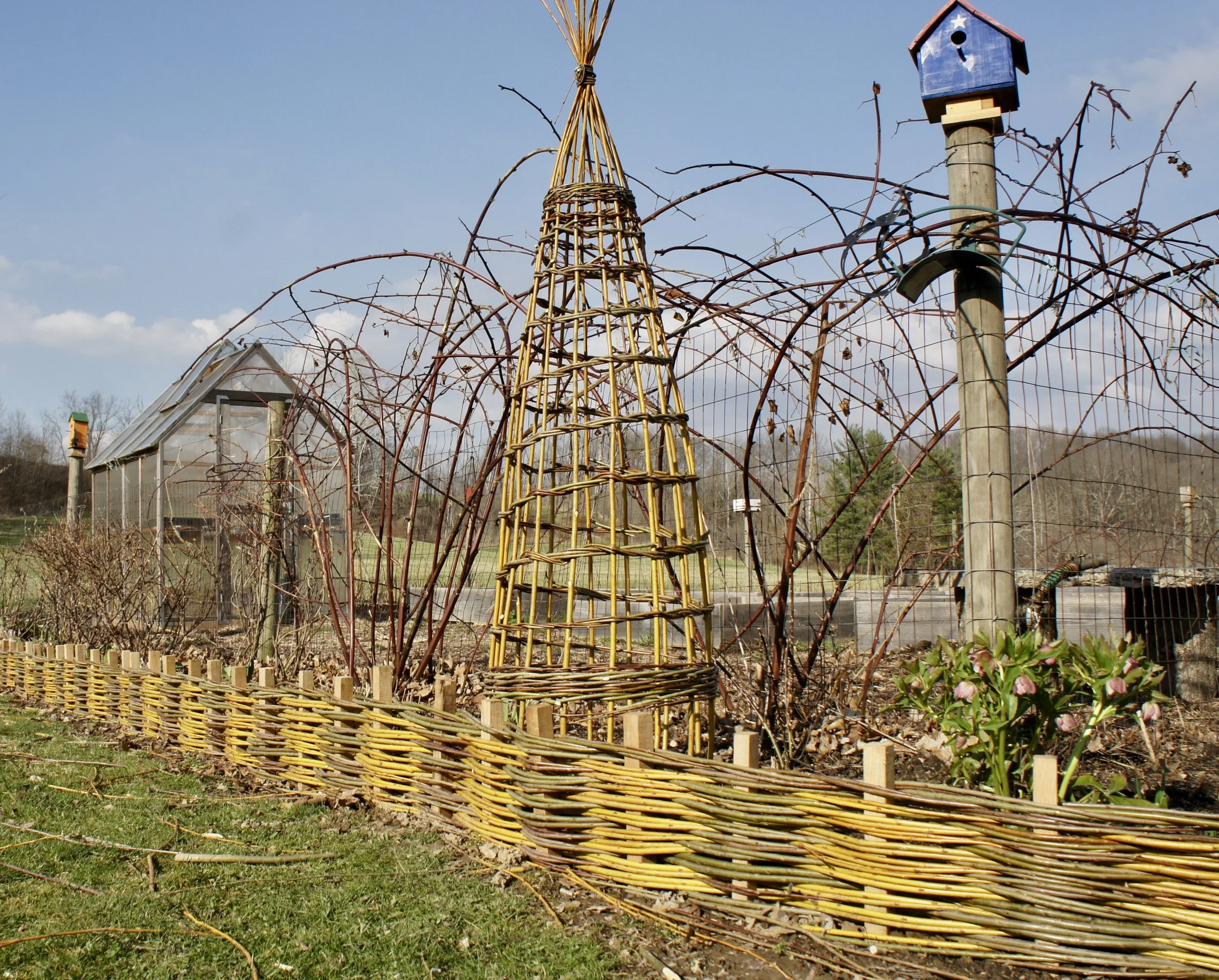 Living Willow Farm creates woven willow landscape features by commission for both private, public and commercial use. Past projects include Garden border for garden club, Lewes, DE; Garden box wattle with cedar backing for residence in TX; Garden Box with cedar insert for Carissa Bakery in Long Island, NY; Container urns for a hotel in Brooklyn, NY; Herb garden wattle beds for a residence in Hudson, NY; Willow wattle border for Franklin Park Conservatory; Woven garden gates in various locations; Wattle panels in cedar frames for a private residence fence in MA; Woven border edge for garden bed in Roseville, OH.