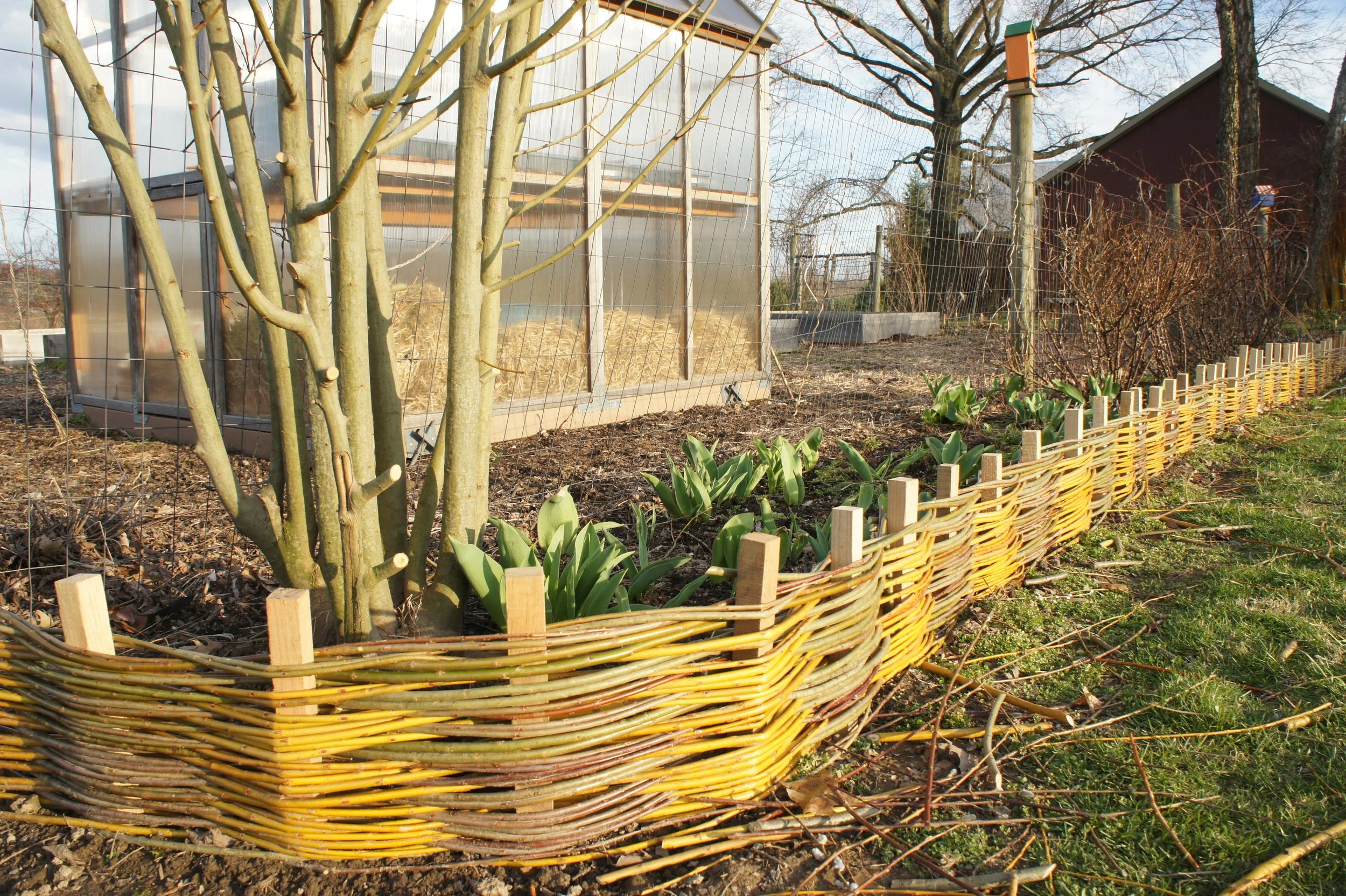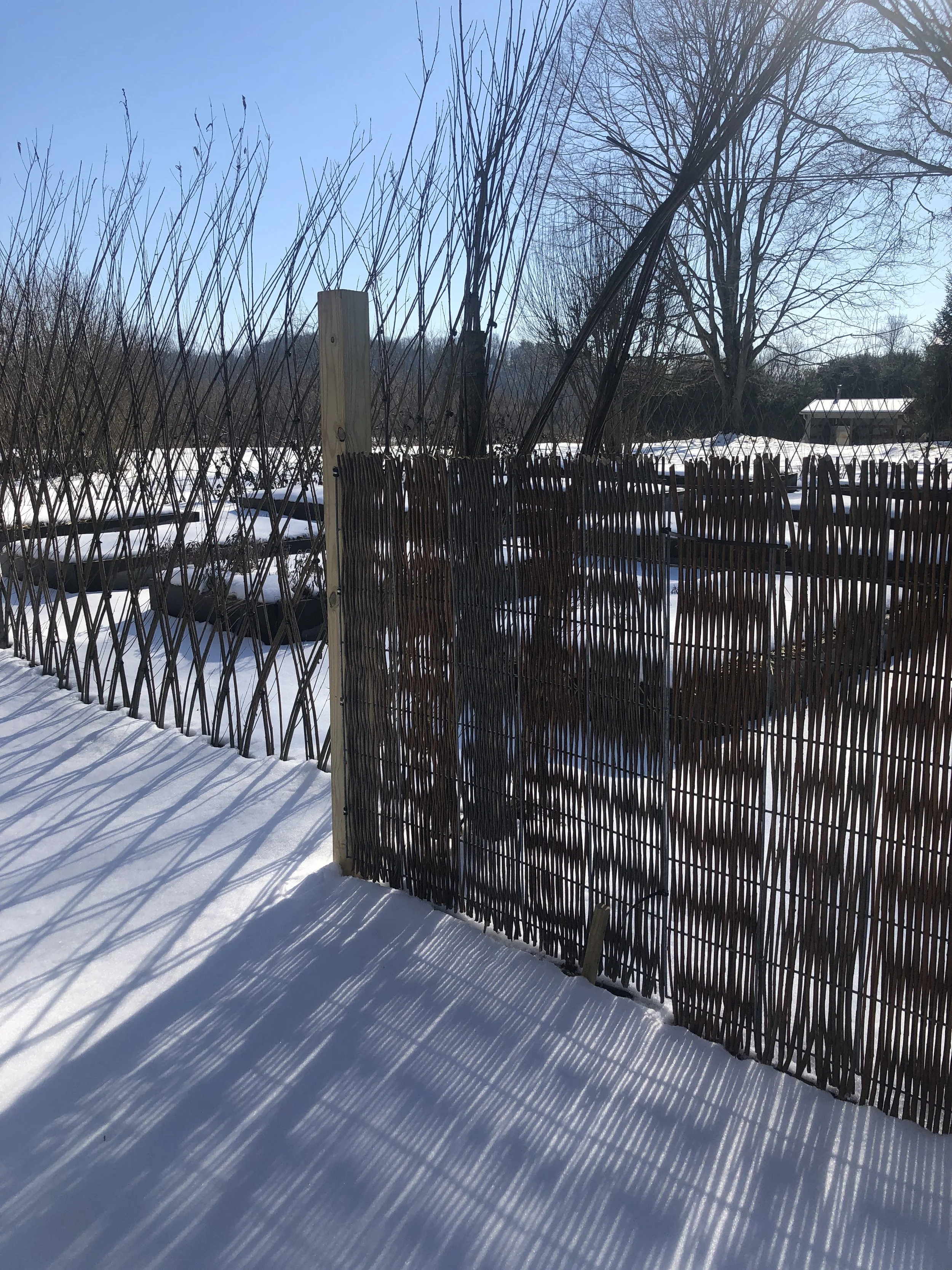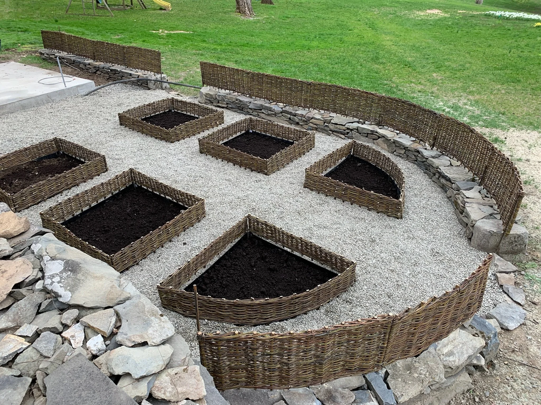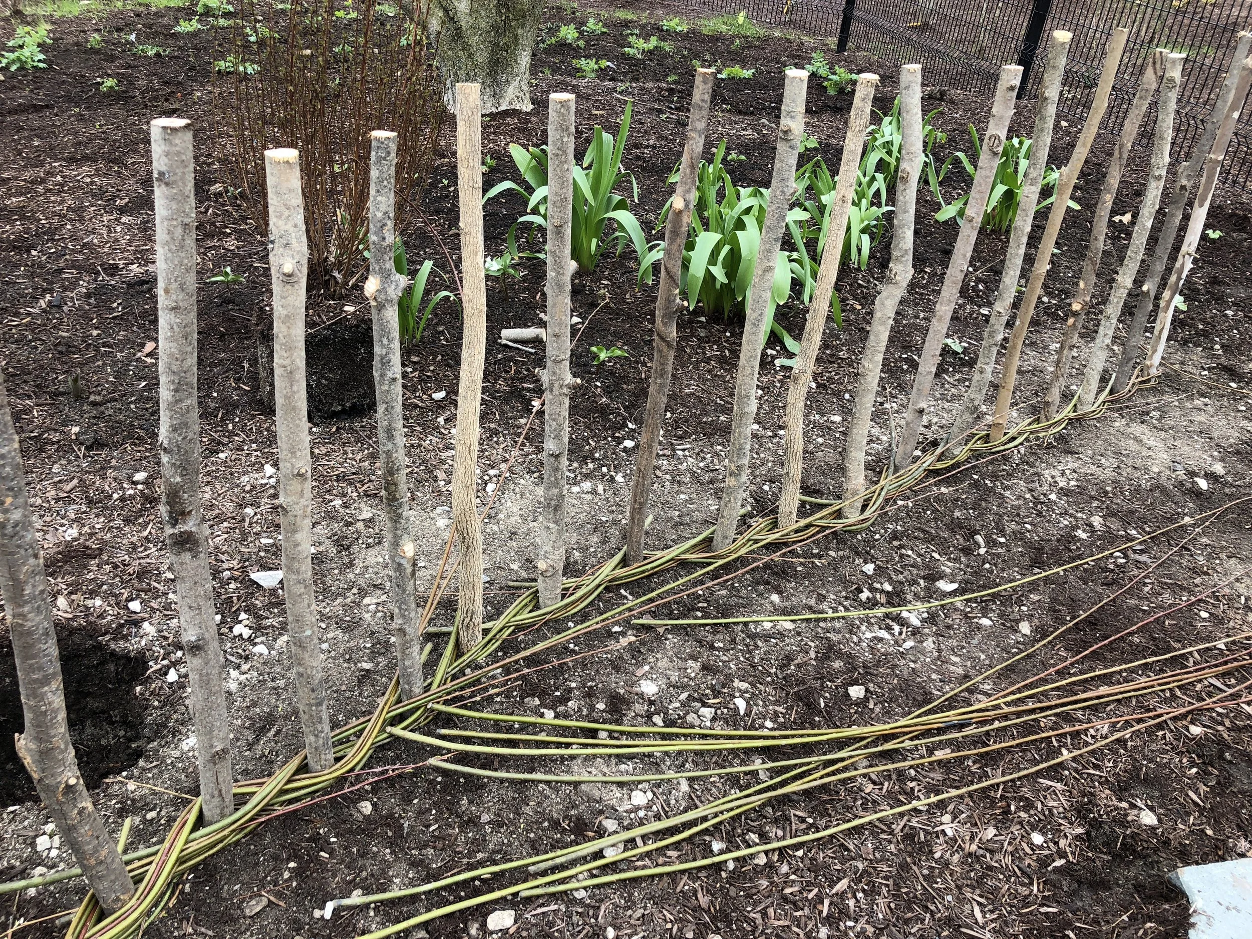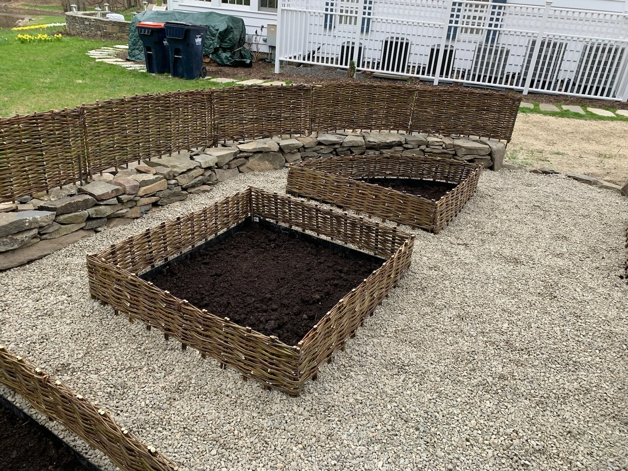 Living Willow Farm creates woven willow landscape features by commission for both private, public and commercial use. Past projects include Garden border for garden club, Lewes, DE; Garden box wattle with cedar backing for residence in TX; Garden Box with cedar insert for Carissa Bakery in Long Island, NY; Container urns for a hotel in Brooklyn, NY; Herb garden wattle beds for a residence in Hudson, NY; Willow wattle border for Franklin Park Conservatory; Woven garden gates in various locations; Wattle panels in cedar frames for a private residence fence in MA; Woven border edge for garden bed in Roseville, OH.