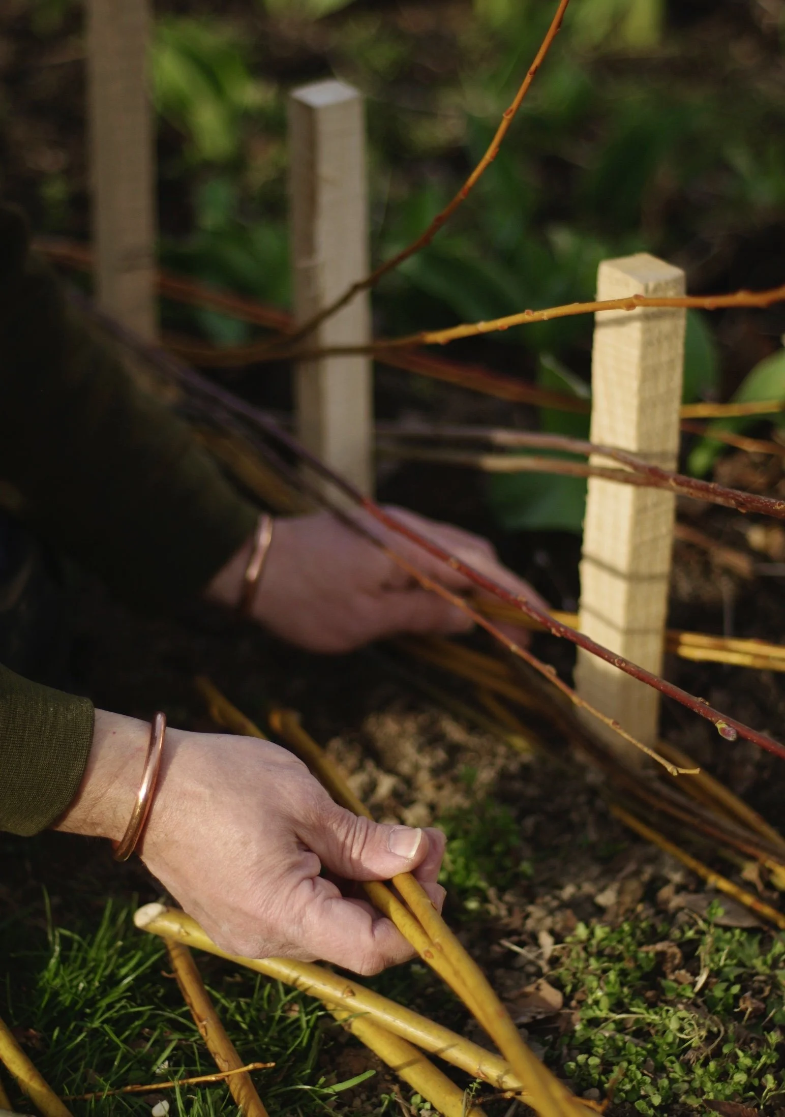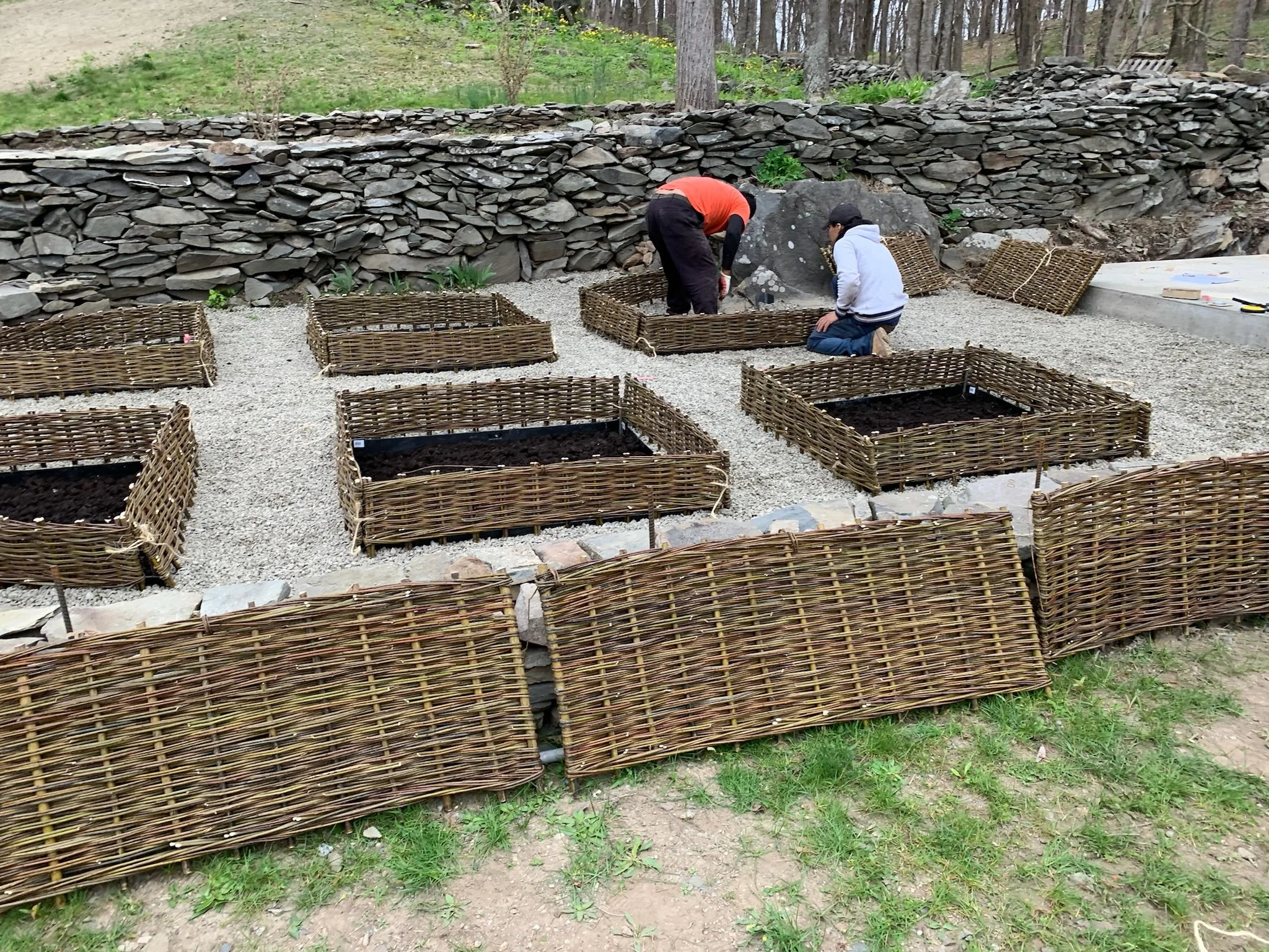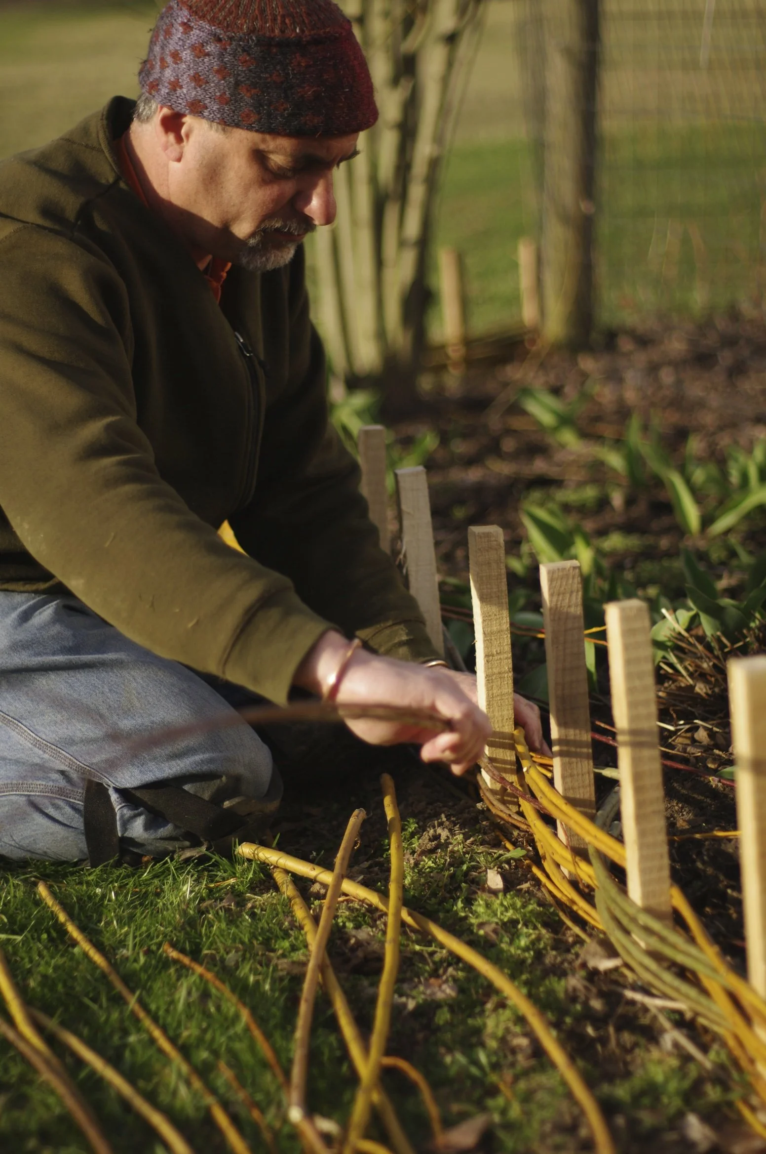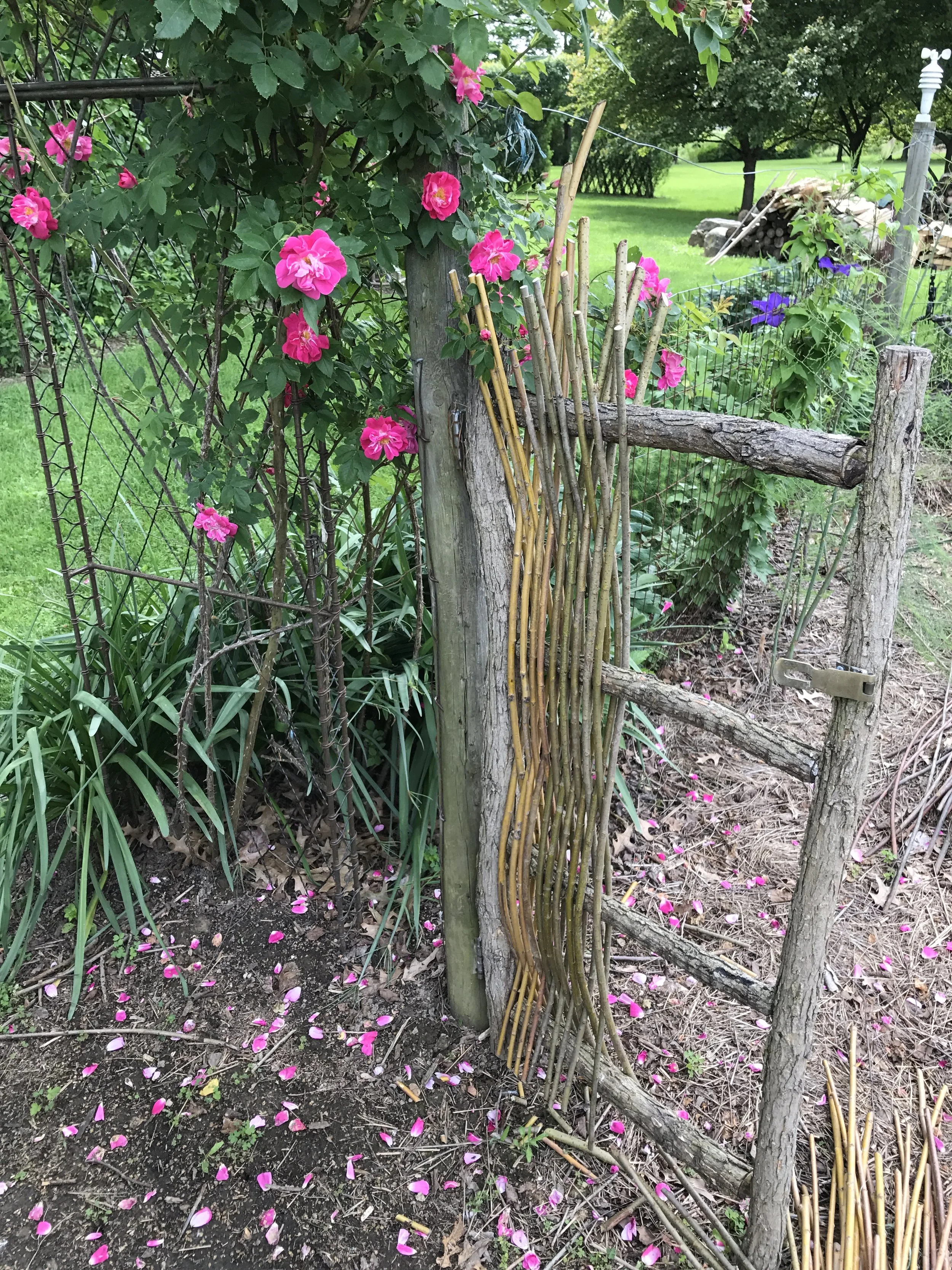 Living Willow Farm creates woven willow landscape features by commission for both private, public and commercial use. Past projects include Garden border for garden club, Lewes, DE; Garden box wattle with cedar backing for residence in TX; Garden Box with cedar insert for Carissa Bakery in Long Island, NY; Container urns for a hotel in Brooklyn, NY; Herb garden wattle beds for a residence in Hudson, NY; Willow wattle border for Franklin Park Conservatory; Woven garden gates in various locations; Wattle panels in cedar frames for a private residence fence in MA; Woven border edge for garden bed in Roseville, OH.